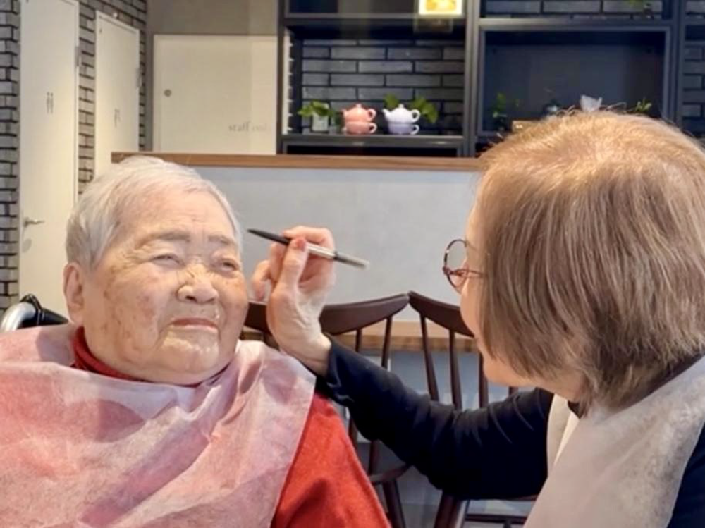 介護現場に出張し、お化粧やマニキュアといった“おめかし”レクリエーションをお届けしている磯さんが、